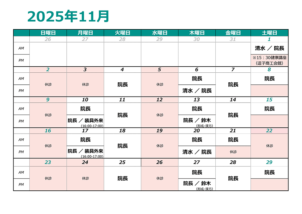 詳しくはリンク先をご覧ください。- 2025.03.28 2025年4月より 診療体制変更のお知らせ (第1・3・5木曜日午後、第1土曜日)